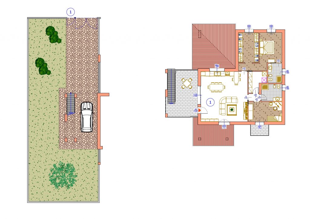 Il progetto prevede la costruzione di due appartamenti, rispettivamente al piano terra e al primo piano (entrambi tricamere e doppi servizi).