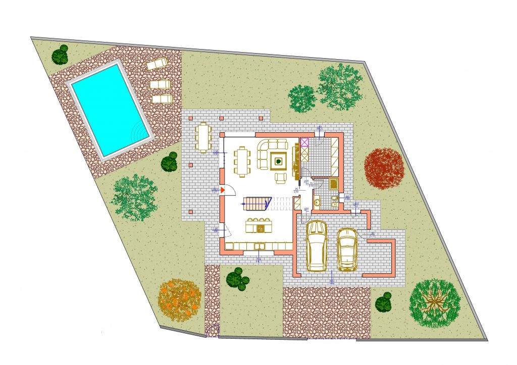 Il progetto prevede la costruzione di una villa singola indipendente che si sviluppa su Piano Terra (zona giorno e servizi) e Primo Piano (zona notte).